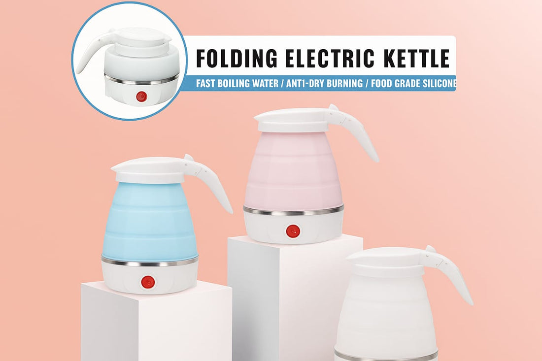 "Fold, pack, and boil anywhere! This silicone electric kettle is perfect for travel and everyday...